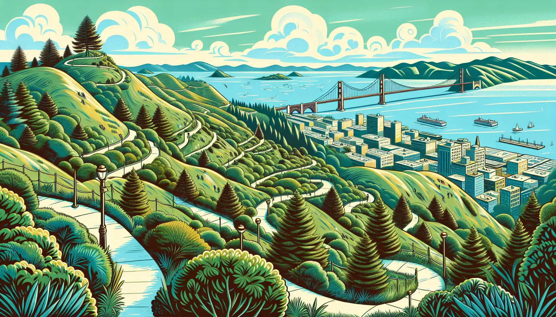 • Highlights: Provides one of the best views of San Francisco from its second-highest peak. The trail is paved and accessible.